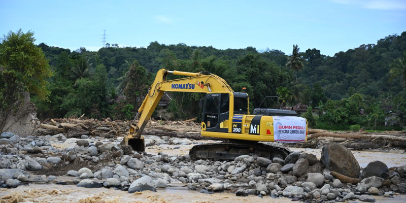 Selain bantuan logistik, perusahaan juga mengerahkan tiga unit alat berat untuk membersihkan material lumpur di sejumlah titik terdampak. Fokus utama pembersihan berada di sepanjang Jalan Raya Mohammad Hatta, jalur vital yang menghubungkan Simpang Pasar Baru dan Simpang Pasir.