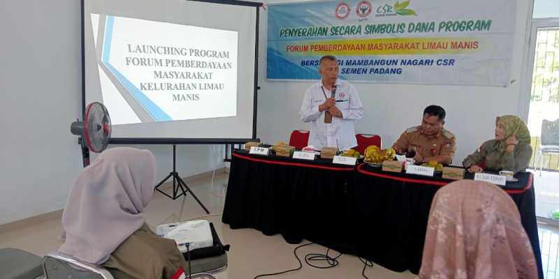Sekretaris Perusahaan PT Semen Padang, Win Bernadino, menyampaikan apresiasi kepada Forum Pemberdayaan Masyarakat Kelurahan Limau Manis atas kolaborasi dan komitmen mereka dalam menjalankan program TJSL perusahaan.