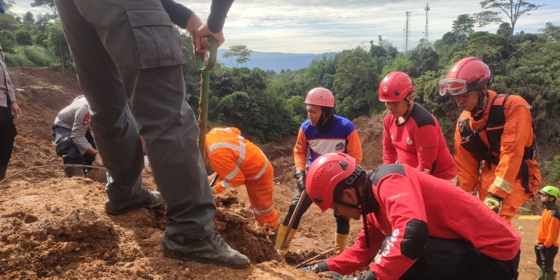 Pencarian di sekitaran warung Sate Shinta yang tertimbun longsoran tanah akibat gempa itu kami lakukan bersama SAR gabungan. Pencarian dilakukan secara manual menggunakan cangkul dan sekop.