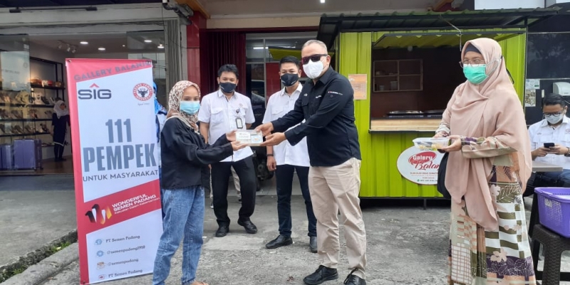 PADANG (17/3/2021) - PT Semen Padang membagikan sebanyak 111 pempek atau empek-empek kepada juru parkir, pedagang kaki lima dan masyarakat di sekitar Gallery Balanjo Pusat Oleh-oleh Khas Sumatera Barat di Jalan Pemuda, Kota Padang, Rabu (17/3/2021) sore.