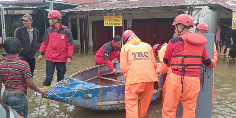 Kota Padang Dikepung Banjir, Semen Padang Kirim Relawan TRC Evakuasi Korban Banjir