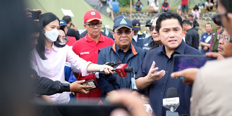 PADANG (25/11/2022) - Menteri BUMN, Erick Thohir, mengapresiasi kinerja Satgas BUMN Peduli yang turut serta membantu penanggulangan korban gempa bumi yang terjadi di Kabupaten Cianjur, Jawa Barat, pada Senin (21/11/2022) siang.