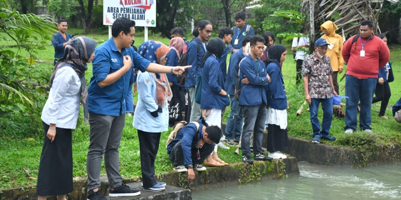 PADANG (23/6/2022) - Sebanyak 25 mahasiswa Fakultas Perikanan dan Ilmu Kelautan, Universitas Bung Hatta (UBH), mengunjungi area konservasi ikan bilih di kawasan Taman Keanekaragaman Hayati (Kehati) PT Semen Padang, Kamis, (23/6/2022).