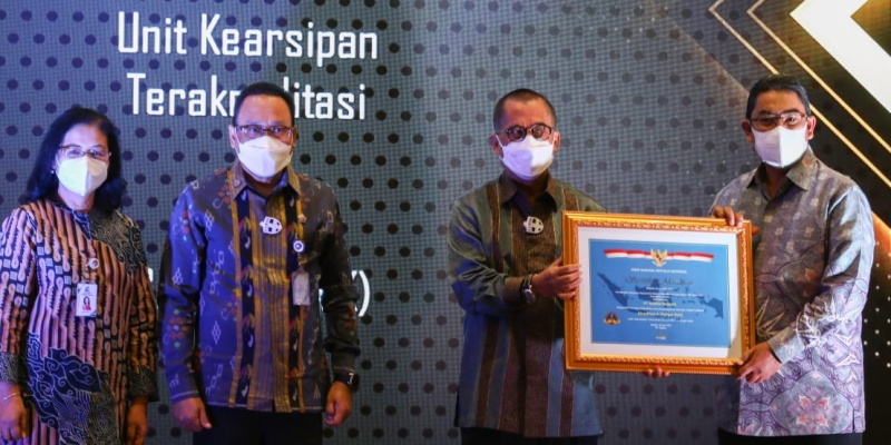 Plt Kepala ANRI Muhammad Taufik mengucapkan selamat kepada perusahaan dan intansi pusat serta daerah yang telah berhasil mendapatkan Sertifikat Akreditasi Kearsipan berdasarkan potret dari ANRI.