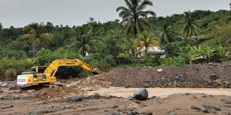 Ia menjelaskan bahwa alat berat PC 200 ini sebenarnya sudah bekerja sejak hari pertama posko penanganan dibuka, yakni 1 Desember 2025. Hanya saja, pada awal penugasannya, alat berat tersebut difokuskan ke kawasan Simpang Pasir, Gunung Nago, untuk membuat tanggul sungai yang juga terdampak derasnya banjir.