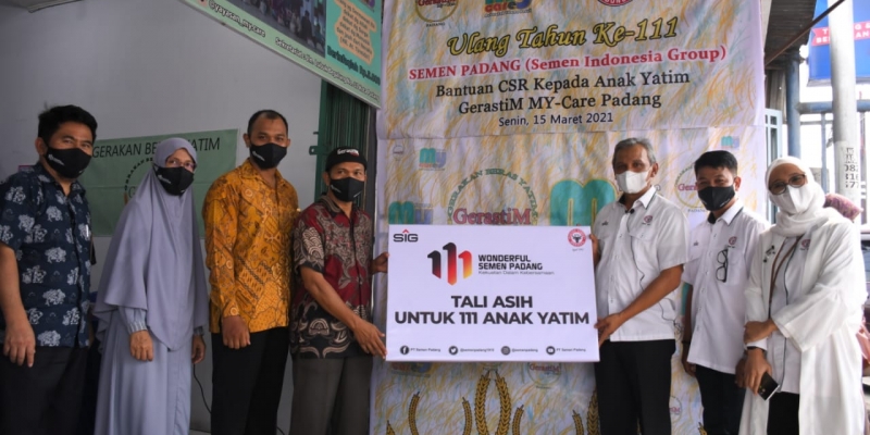 PADANG (15/3/2021) - Dalam rangka memperingati HUT ke-111, PT Semen Padang menyalurkan bantuan tali asih kepada 111 anak yatim di Kota Padang.