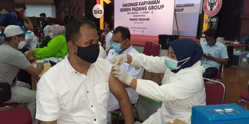 PADANG (26/7/2021) - PT Semen Padang kembali menggelar program vaksinasi. Bekerjasama dengan Pemko Padang, vaksinasi dosis 2 untuk gelombang II itu diikuti oleh karyawan Semen Padang Group pada Senin (26/7/2021) hingga Selasa (27/7/2021).