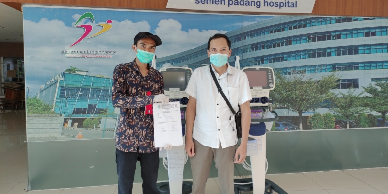 PADANG, 15/5/2021 - Dalam membantu upaya penanganan pasien COVID-19 di Sumbar, Semen Padang Hospital (SPH) memberikan pinjaman 2 ventilator kepada RSUP M. Djamil, Sabtu, 15 Mei 2021.