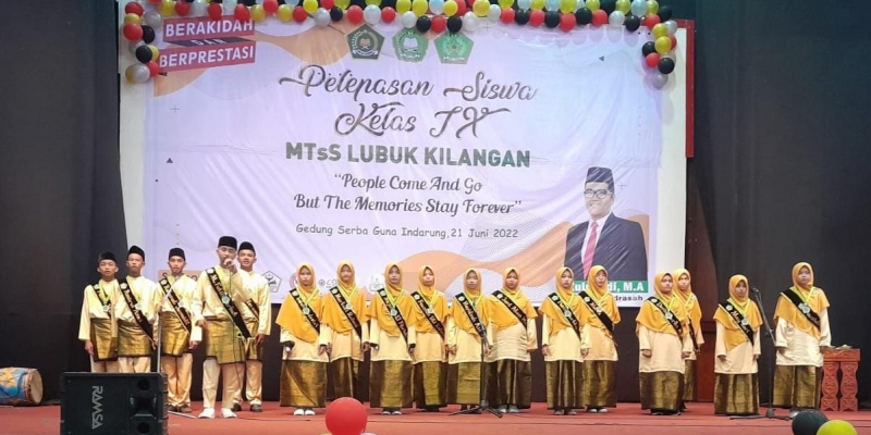 PADANG, 25/6/2022- Sebanyak 59 siswa kelas IX MTsS Lubuk Kilangan Kota Padang yang menamatkan pendidikannya tahun ini, dilepas oleh pihak sekolah binaan PT Semen Padang tersebut dalam acara yang dilaksanakan di Gedung Serba Guna Semen Padang, Selasa (21/6/2022).