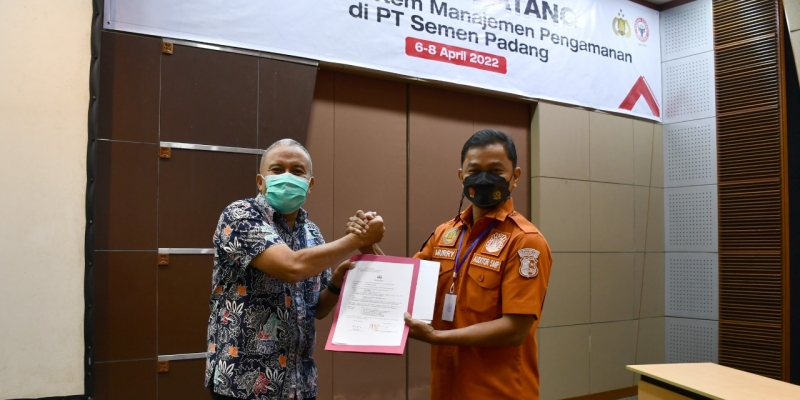 Tim Auditor Baharkam Mabes Polri mengunjungi PT Semen Padang untuk mengaudit implementasi Sistem Manajemen Pengamanan (SMP) berdasarkan Perpol No 7 Tahun 2019 pada Rabu (6/4/2022).